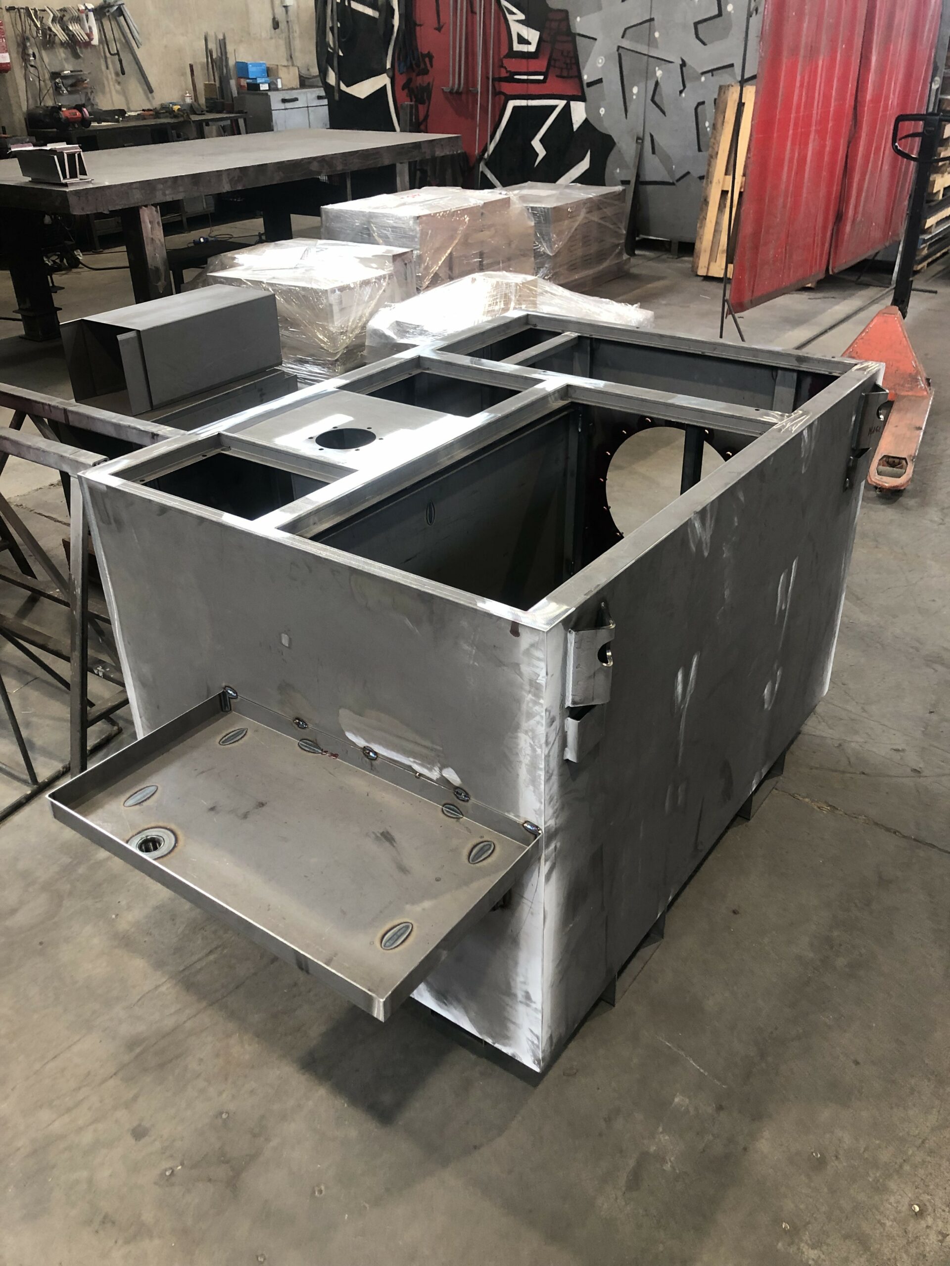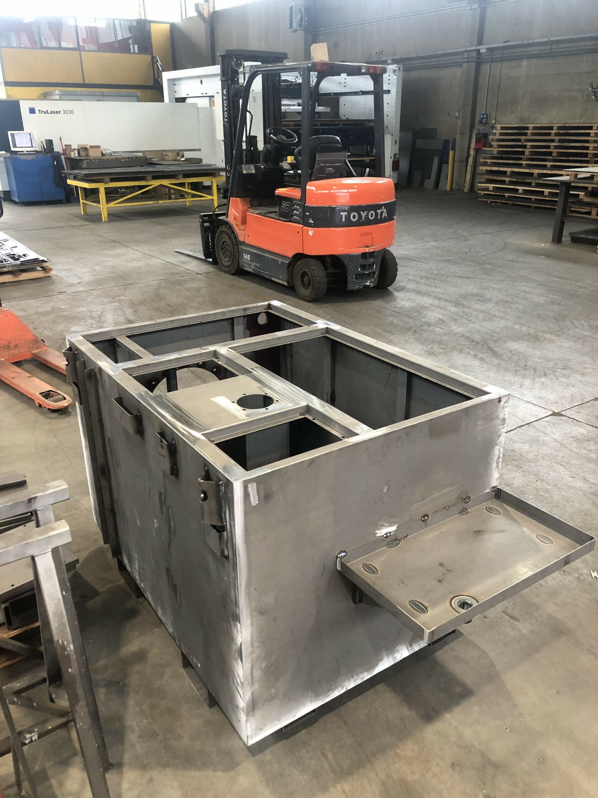 Vasca in acciaio inox, realizzata tramite taglio laser e saldatura TIG, con sportello laterale