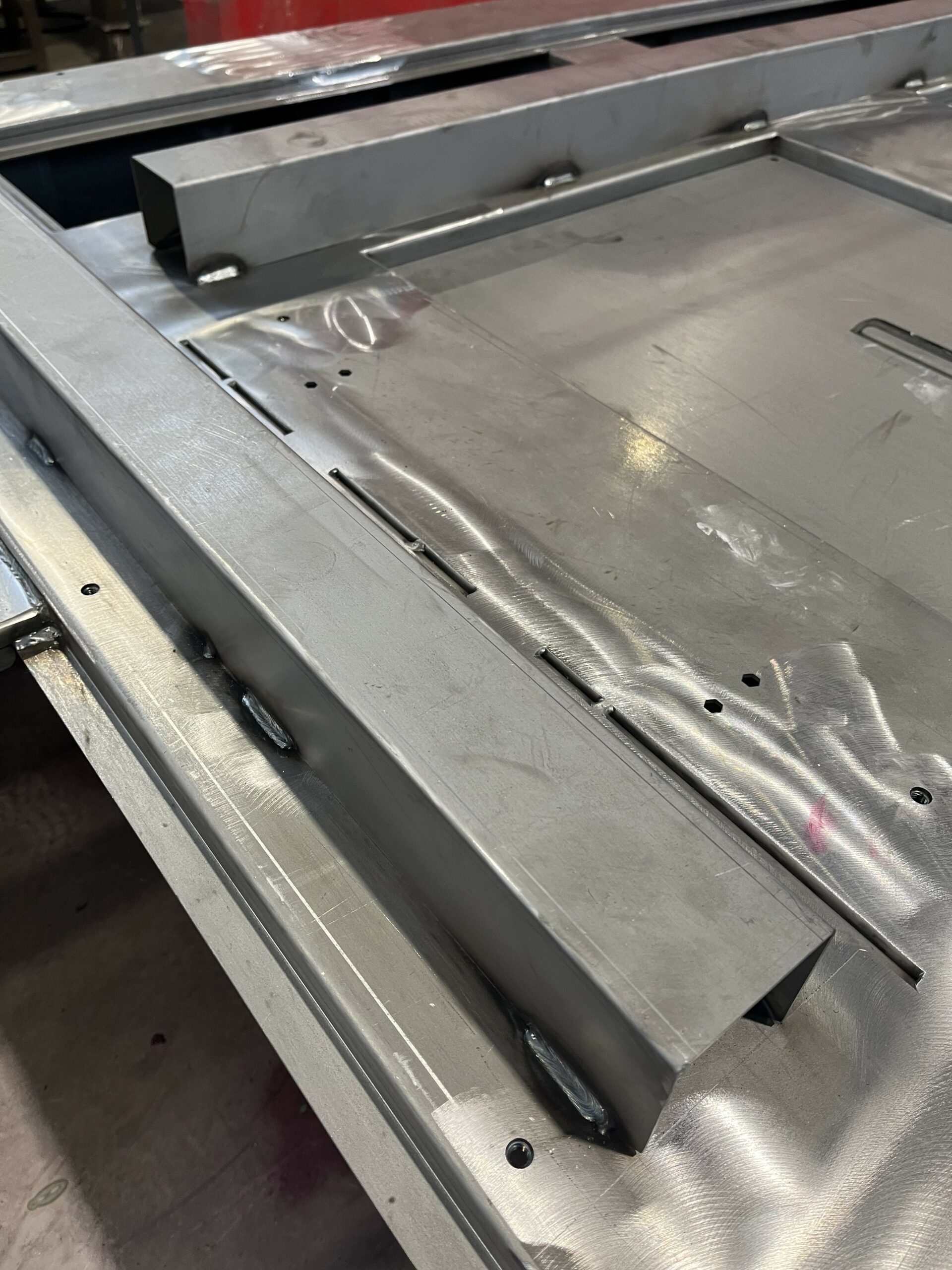 Vasca in acciaio inox, realizzata tramite taglio laser e saldatura TIG, con sportello laterale